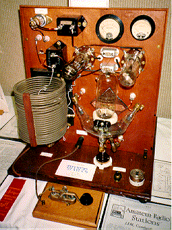 This replica of a 1920s transmitter was built by Ed White, W1NPL.