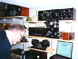 4140 J. Hoffman - W2FBM's 1920's radio station with his son at the key in 1996: (65KB)