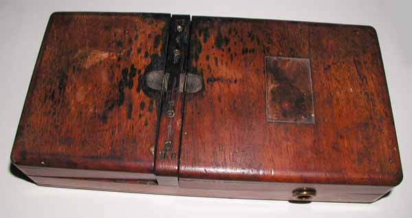 The very unusual battery consists of two squares of zinc and a hard rubber