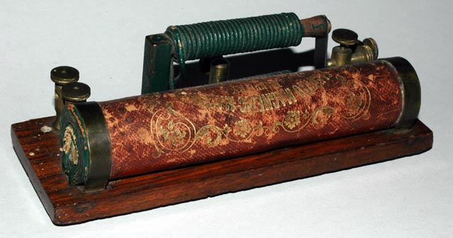 gold lettering on the leather cover of the coil reads: ELECTRO MAGNETIC