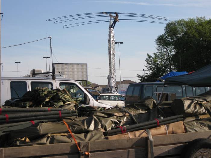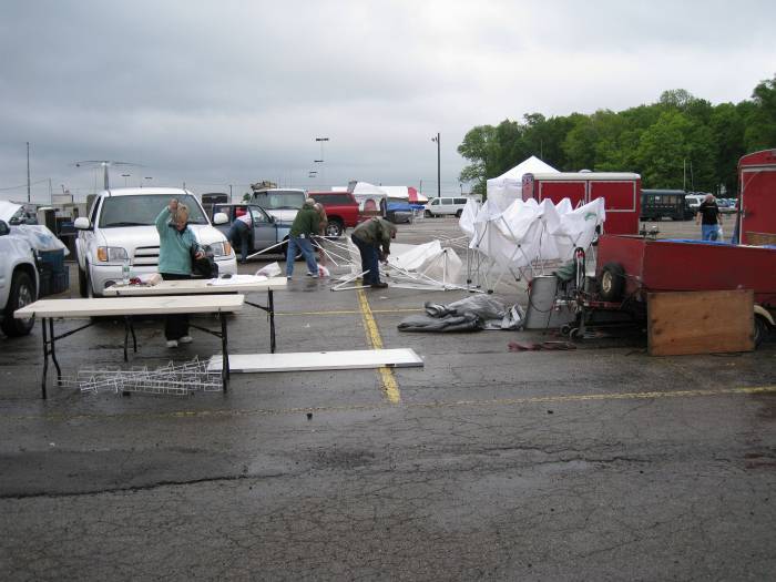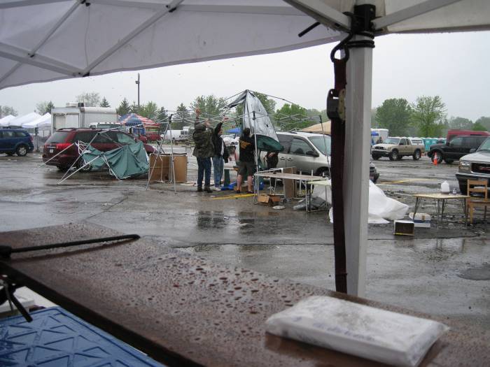 When I arrived at the hamfest on Thursday, setup day, the usual rainstorm was