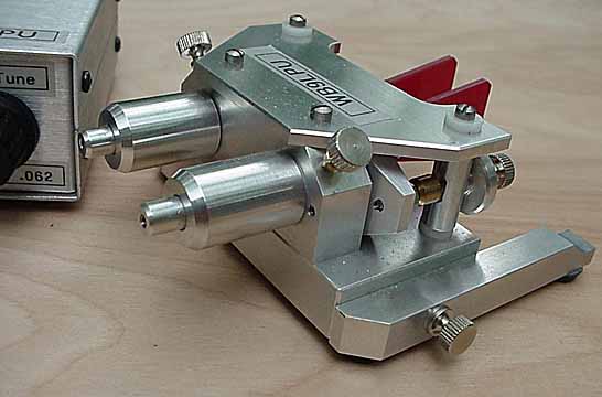 entirely of aluminum. The upper screws set the limits of travel, while the