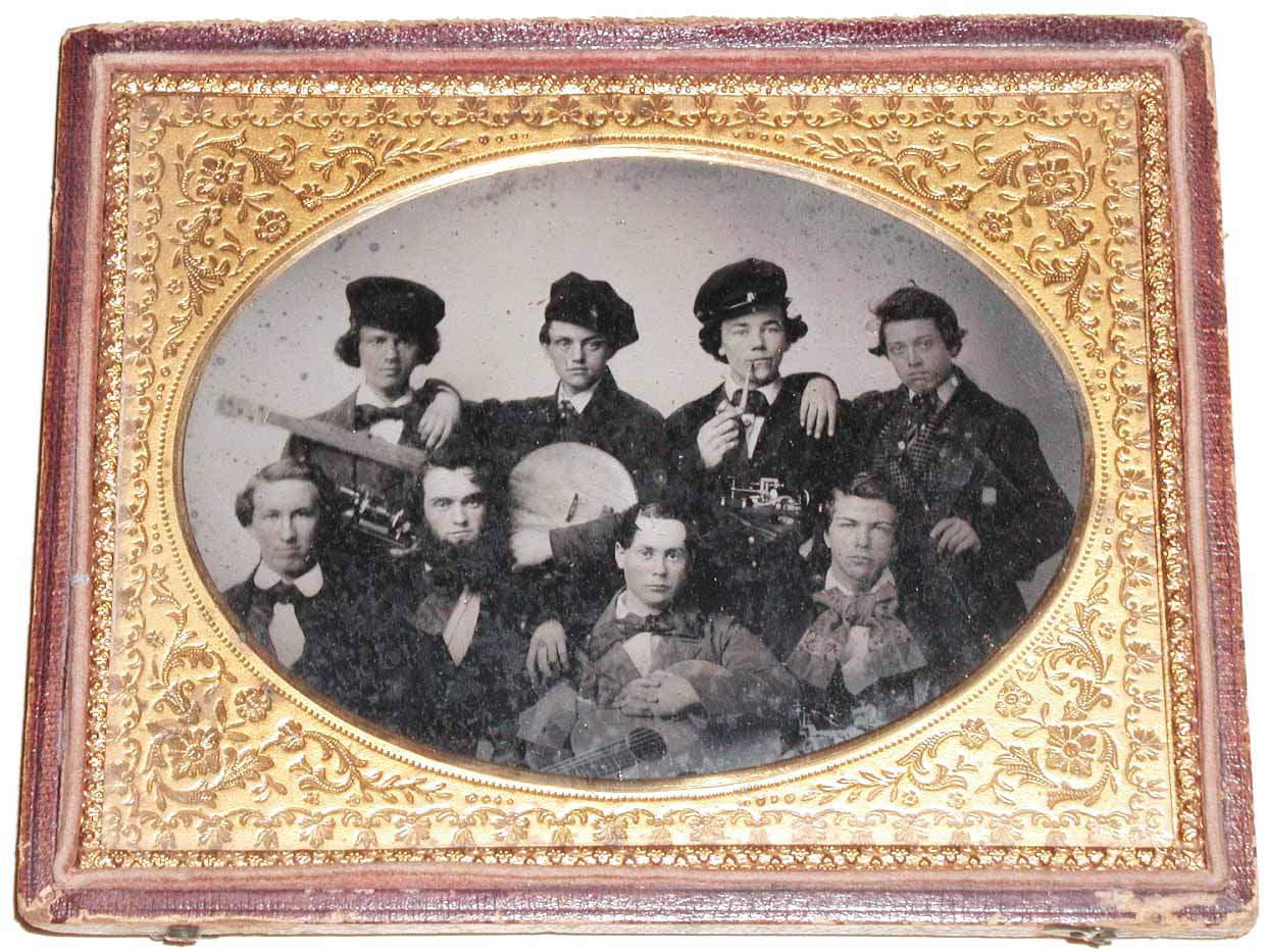 52 ** EXTREMELY EARLY TELEGRAPH AND MINSTREL AMBROTYPE: